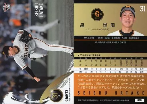 Nombre comercial en japonés: BBM/レギュラーカード/BBM2019 読売ジャイアンツ G16 [レギュラーカード] : 畠世周