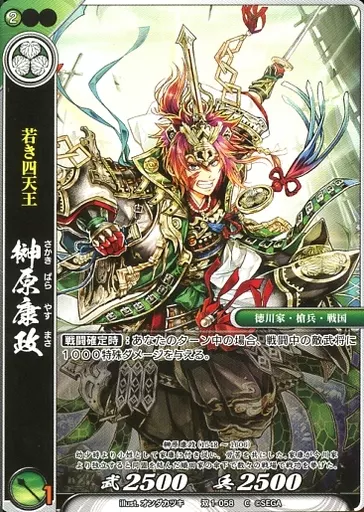 Nombre comercial en japonés: 戦国大戦TCG/C/武将/翠/双 第一弾ブースターパック 双1-058[C]:榊原康政