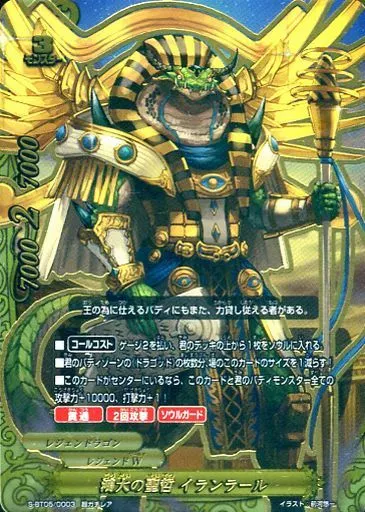 Nombre comercial en japonés: バディファイト/超ガチレア/モンスター/レジェンドW/[BF-S-BT05]神バディファイトブースターパック第5弾「神VS王!!竜神超決戦!!」 S-BT05/0003[超ガチレア]:鴻大の聖哲 イランラール