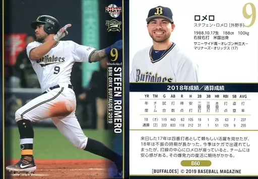 Nombre comercial en japonés: BBM/レギュラーカード/BBM2019 オリックス・バファローズ B60 [レギュラーカード] : ロメロ
