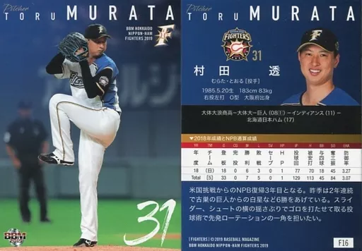 Nombre comercial en japonés: BBM/レギュラーカード/BBM2019 北海道日本ハムファイターズ F16 [レギュラーカード] : 村田透