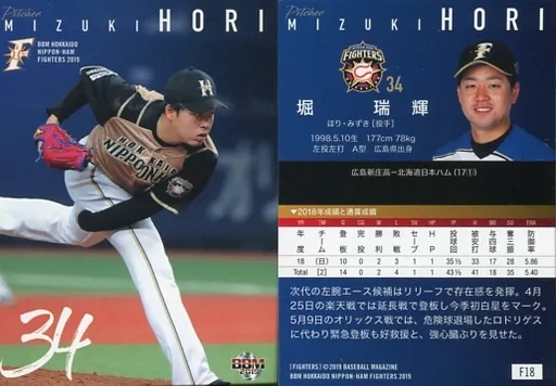 Nombre comercial en japonés: BBM/レギュラーカード/BBM2019 北海道日本ハムファイターズ F18 [レギュラーカード] : 堀瑞輝