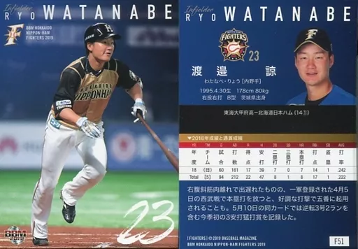 Nombre comercial en japonés: BBM/レギュラーカード/BBM2019 北海道日本ハムファイターズ F51 [レギュラーカード] : 渡邉諒