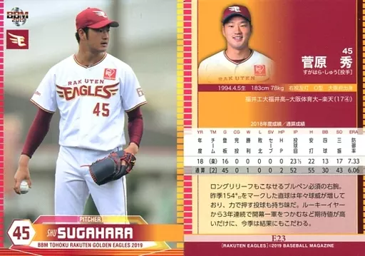 Nombre comercial en japonés: BBM/レギュラーカード/BBM2019 東北楽天ゴールデンイーグルス E23 [レギュラーカード] : 菅原秀