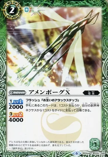 Nombre comercial en japonés: バトルスピリッツ/C/スピリット/超煌臨編 第2章 双刃乃神 BS49-025[C]:アメンボーグX