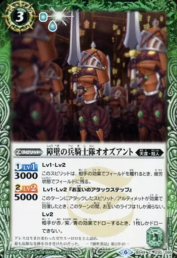 Nombre comercial en japonés: バトルスピリッツ/C/スピリット/超煌臨編 第2章 双刃乃神 BS49-030[C]:障壁の兵騎士隊オオズアント