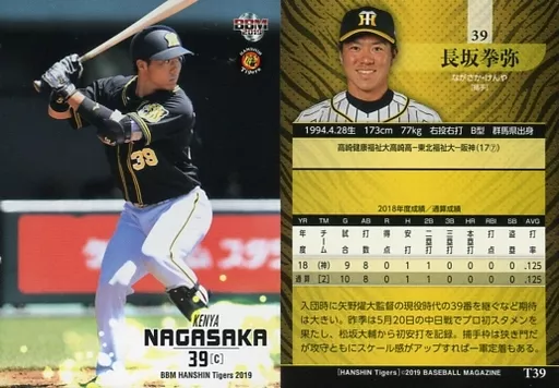 Nombre comercial en japonés: BBM/レギュラーカード/BBM2019 阪神タイガース T39 [レギュラーカード] : 長坂拳弥