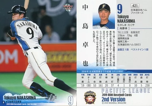 Nombre comercial en japonés: BBM/レギュラーカード/北海道日本ハムファイターズ/BBM2019 ベースボールカード 2ndバージョン 421 [レギュラーカード] : 中島卓也