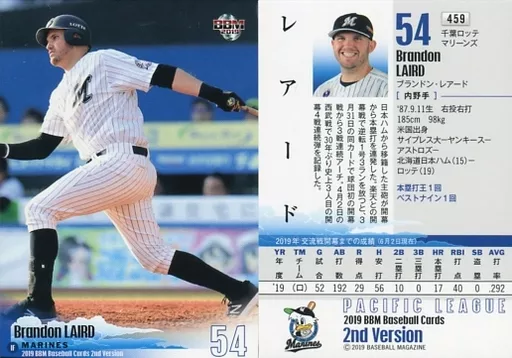 Nombre comercial en japonés: BBM/レギュラーカード/千葉ロッテマリーンズ/BBM2019 ベースボールカード 2ndバージョン 459 [レギュラーカード] : レアード(全身)
