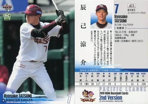 Nombre comercial en japonés: BBM/レギュラーカード/東北楽天ゴールデンイーグルス/BBM2019 ベースボールカード 2ndバージョン 477 [レギュラーカード] : 辰己涼介