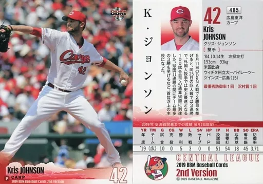 Nombre comercial en japonés: BBM/レギュラーカード/広島東洋カープ/BBM2019 ベースボールカード 2ndバージョン 485 [レギュラーカード] : K.ジョンソン