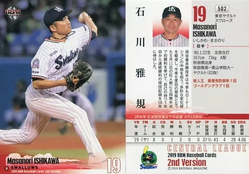Nombre comercial en japonés: BBM/レギュラーカード/東京ヤクルトスワローズ/BBM2019 ベースボールカード 2ndバージョン 502 [レギュラーカード] : 石川雅規