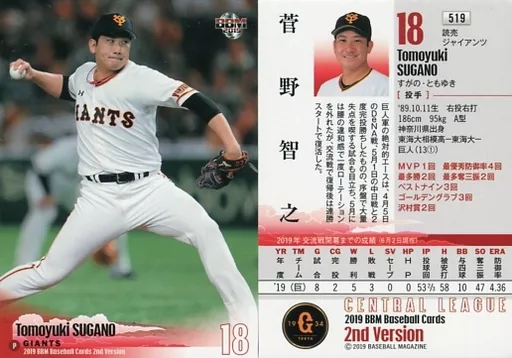 Nombre comercial en japonés: BBM/レギュラーカード/読売ジャイアンツ/BBM2019 ベースボールカード 2ndバージョン 519 [レギュラーカード] : 菅野智之