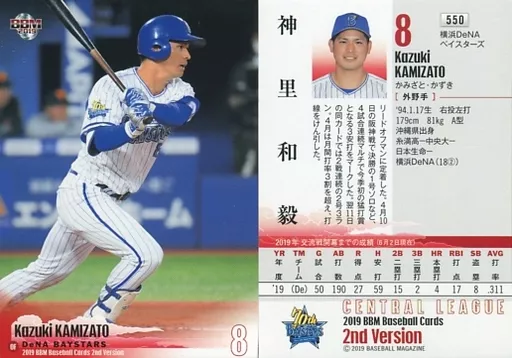 Nombre comercial en japonés: BBM/レギュラーカード/横浜DeNAベイスターズ/BBM2019 ベースボールカード 2ndバージョン 550 [レギュラーカード] : 神里和毅