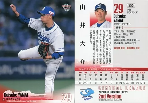 Nombre comercial en japonés: BBM/レギュラーカード/中日ドラゴンズ/BBM2019 ベースボールカード 2ndバージョン 555 [レギュラーカード] : 山井大介