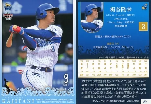 Nombre comercial en japonés: BBM/レギュラーカード/現役レギュラー/横浜DeNAベイスタース/BBM2019 横浜DeNAベイスタース70周年ベースボールカード 89 [レギュラーカード] : 梶谷隆幸