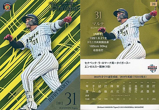 Nombre comercial en japonés: BBM/レギュラーカード/阪神タイガース/BBM2019 Brilliant 阪神タイガース 20 [レギュラーカード] : マルテ