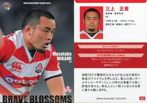 Nombre comercial en japonés: BBM/レギュラーカード/BBM2019 日本ラグビーカード 03 [レギュラーカード] : 三上正貴