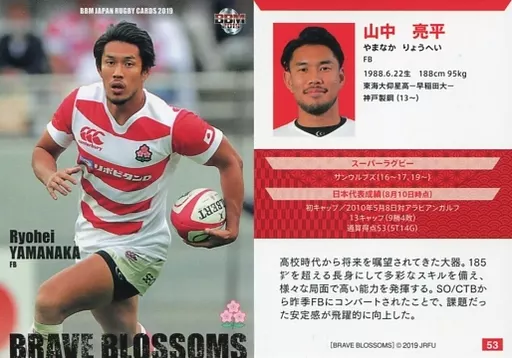 Nombre comercial en japonés: BBM/レギュラーカード/BBM2019 日本ラグビーカード 53 [レギュラーカード] : 山中亮平