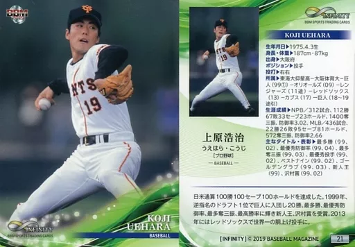 Nombre comercial en japonés: BBM/レギュラーカード/BBM2019 インフィニティ 21 [レギュラーカード] : 上原浩治