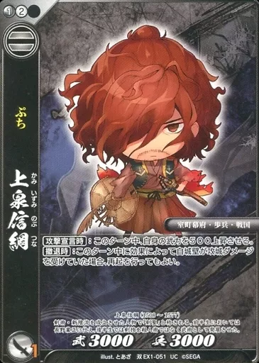 Nombre comercial en japonés: 戦国大戦TCG/UC/武将/黒/双 エクストラパック ~伝承の切札~ 双EX1-051[UC]:上泉信綱