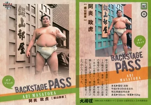 Nombre comercial en japonés: BBM/レギュラーカード/オフショット/-/BBM2020 大相撲カード 82 [レギュラーカード] : 阿炎 政虎