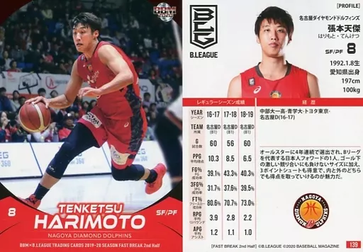 Nombre comercial en japonés: BBM/レギュラーカード/-/名古屋ダイヤモンドドルフィンズ/BBM2020 B.LEAGUE TRADING CARDS 2019-20 SEASON FAST BREAK 2nd Half 139 [レギュラーカード] : 張本天傑