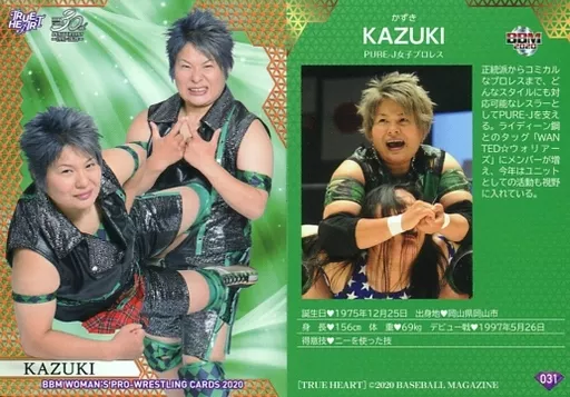 Nombre comercial en japonés: BBM/レギュラーカード/現役選手/-/BBM 女子プロレスカード2020 TRUE HEART 031 [レギュラーカード] : KAZUKI