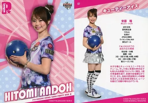 Nombre comercial en japonés: BBM/レギュラーカード/-/-/BBM2020 P★LEAGUEカード PARTY BOX II 07 [レギュラーカード] : 安藤瞳