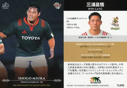 Nombre comercial en japonés: BBM/レギュラーカード/レギュラー/BBM2020 ジャパンラグビートップリーグカード TL043 [レギュラーカード] : 三浦昌悟