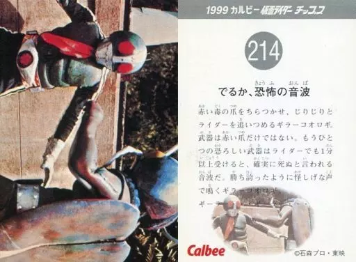 Nombre comercial en japonés: アニメ系トレカ/1999 カルビー 仮面ライダー チップス 第3弾 214:でるか、恐怖の音波