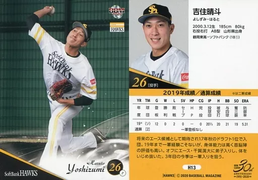 Nombre comercial en japonés: BBM/レギュラーカード/-/福岡ソフトバンクホークス/BBM2020 福岡ソフトバンクホークス H13[レギュラーカード]:吉住晴斗