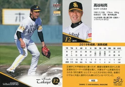 Nombre comercial en japonés: BBM/レギュラーカード/-/福岡ソフトバンクホークス/BBM2020 福岡ソフトバンクホークス H35[レギュラーカード]:髙谷裕亮