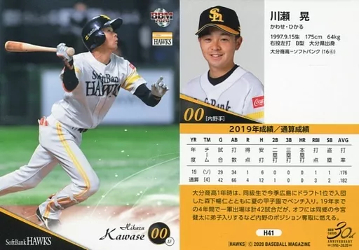 Nombre comercial en japonés: BBM/レギュラーカード/-/福岡ソフトバンクホークス/BBM2020 福岡ソフトバンクホークス H41[レギュラーカード]:髙田知季