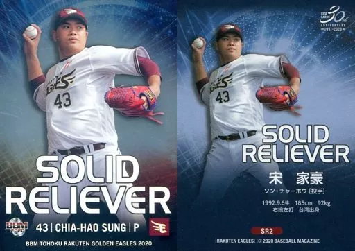 Nombre comercial en japonés: BBM/インサートカード/SOLID RELIEVER/東北楽天ゴールデンイーグルス/BBM2020 東北楽天ゴールデンイーグルス SR2 [インサートカード] : 宋家豪