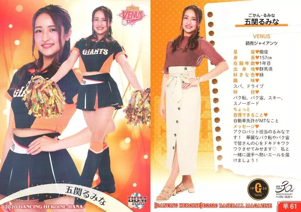Nombre comercial en japonés: BBM/レギュラーカード/-/VENUS/BBM2020 プロ野球チアリーダーカード DANCING HEROINE -華- 華61 [レギュラーカード] : 五関るみな(パラレル版)