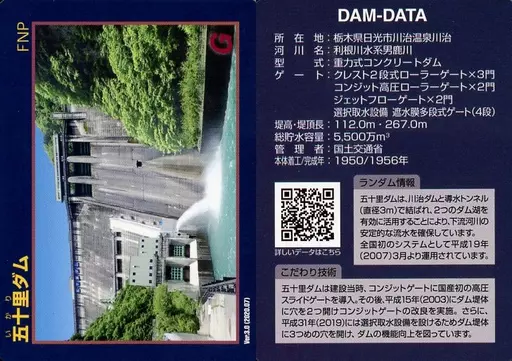 Nombre comercial en japonés: 公共配布カード/栃木県/ダムカード Ver.3.0 (2020.07):五十里ダム