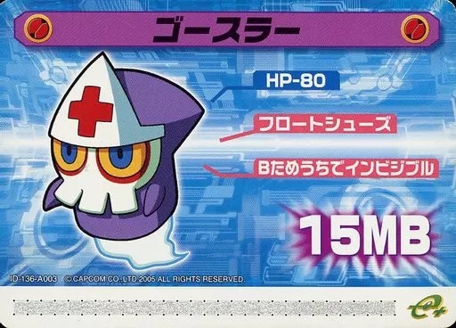 Nombre comercial en japonés: アニメ系トレカ/ロックマンエグゼ5改造カードPart1 136-A003:ゴースラー