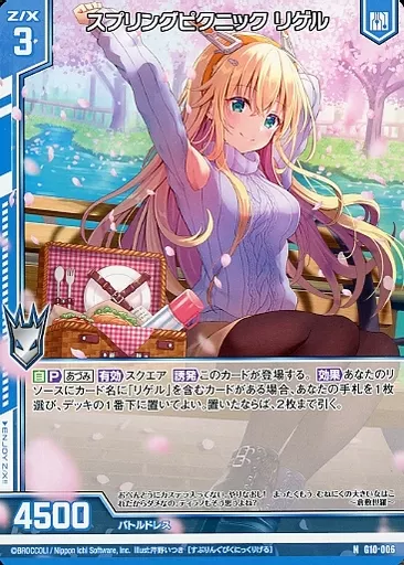 Nombre comercial en japonés: ゼクス/N/ゼクス/キャラクターデッキ 各務原あづみ G10-006[N]:スプリングピクニック リゲル