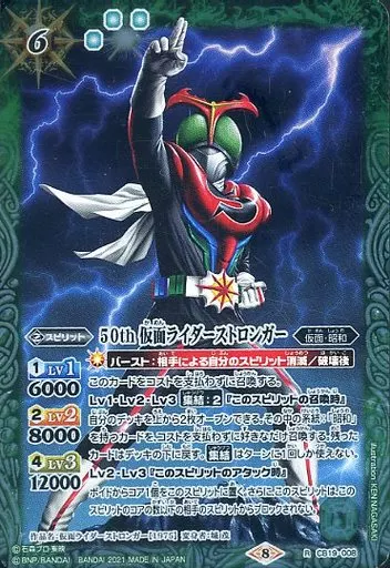 Nombre comercial en japonés: バトルスピリッツ/R/スピリット/コラボブースターSP 仮面ライダー 僕らの希望 CB19-008[R]:50th 仮面ライダーストロンガー