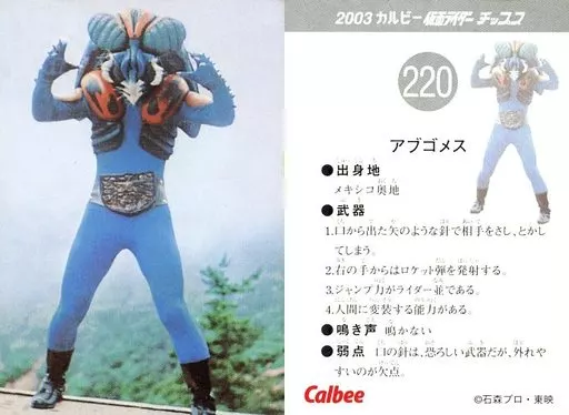 Nombre comercial en japonés: アニメ系トレカ/2003 カルビー 仮面ライダー チップス 220:アブゴメス