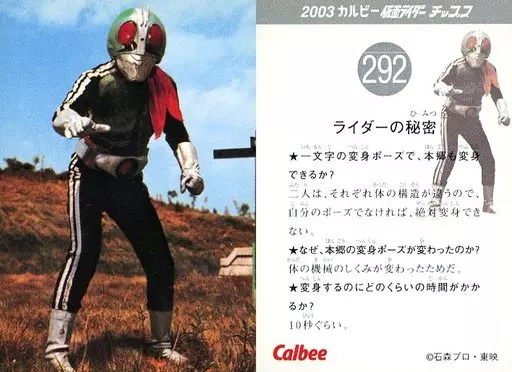 Nombre comercial en japonés: アニメ系トレカ/2003 カルビー 仮面ライダー チップス 292:ライダーの秘密