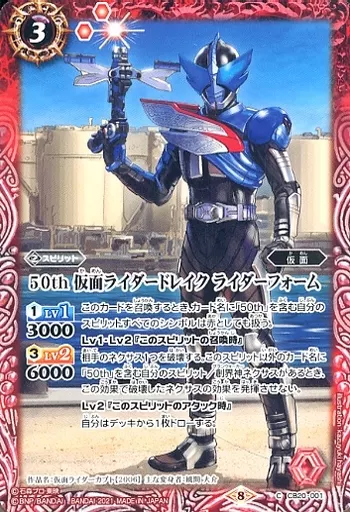Nombre comercial en japonés: バトルスピリッツ/C/スピリット/コラボブースター 仮面ライダー Extra Expansion CB20-001[C]:50th 仮面ライダードレイク ライダーフォーム