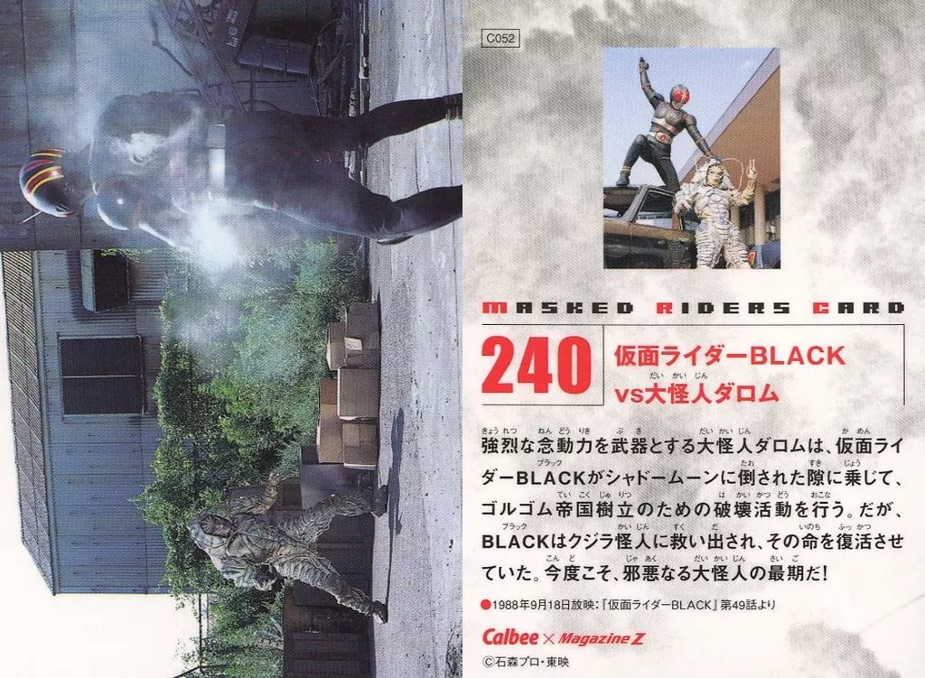 Nombre comercial en japonés: アニメ系トレカ/仮面ライダーチップスR 第2記録 240:仮面ライダーBLACKvs大怪人ダロム