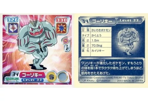 Nombre comercial en japonés: コレクションシール/ノーマル/ポケットモンスターアドバンスジェネレーション 最強シール烈伝 1弾 034[ノーマル]:ゴーリキー