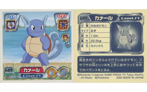 Nombre comercial en japonés: コレクションシール/ノーマル/ポケットモンスターアドバンスジェネレーション 最強シール烈伝 8弾 689[ノーマル]:カメール
