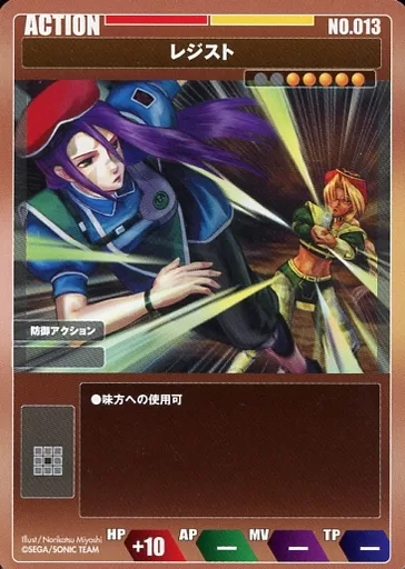 Nombre comercial en japonés: アニメ系トレカ/ACTION/PHANTASY STAR ONLINE EPISODE III C.A.R.D. Revolution NO.013:レジスト
