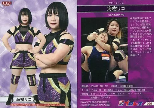 Nombre comercial en japonés: BBM/レギュラーカード/現役選手/BBM 女子プロレスカード2022 026[レギュラーカード]:海樹リコ