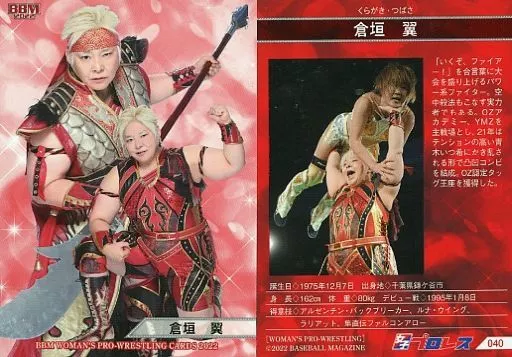 Nombre comercial en japonés: BBM/レギュラーカード/現役選手/BBM 女子プロレスカード2022 040[レギュラーカード]:倉垣翼