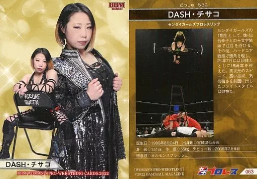 Nombre comercial en japonés: BBM/レギュラーカード/現役選手/BBM 女子プロレスカード2022 063[レギュラーカード]:DASH・チサコ